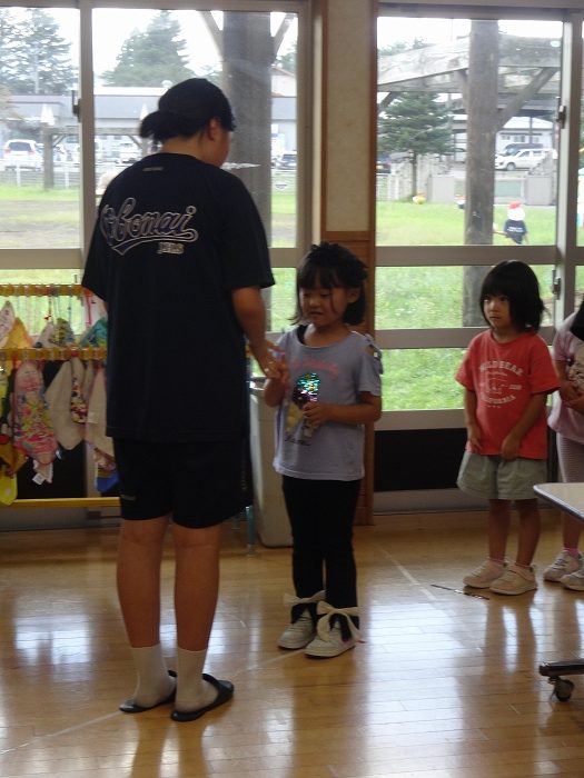 どんどん話しかけてみる子もいれば、恥ずかしくて遠くから眺める子、話しかけてもらうと嬉しそうにする子と一人一人思いは様々のようです。2日間たっぷりと楽しい時間を過ごしました。