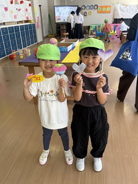 中学生の作る景品はレベルが高い!初めて見る折り紙の景品に、子どもたちは驚き、ゲットするととても大事そうに抱えていました。