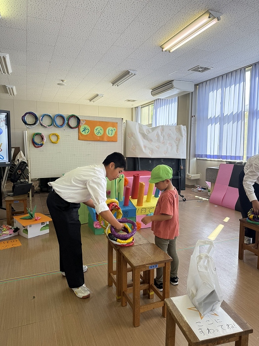 すぐに「やってみたい!」気持ちがいっぱいになっていた子どもたちです。中学生のお兄さんお姉さんがやり方を教えてくれたり、一緒に遊んでくれたりするので、子どもたちはあっという間に夢中になりました。