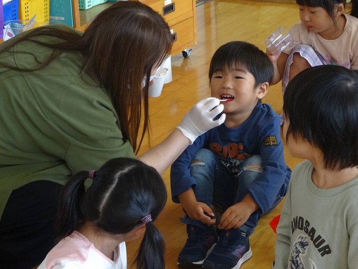 大仙保健所の保健師さんより、歯みがき指導をしていただきました。