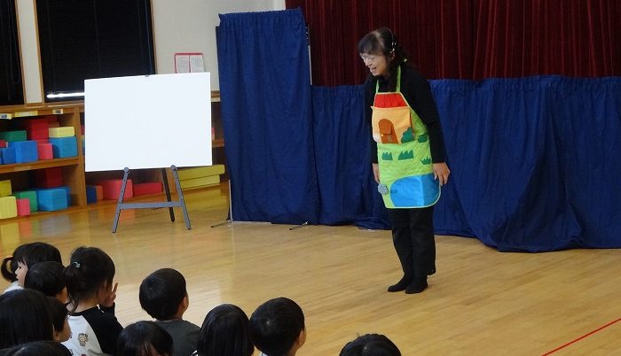 初めて見せていただいたおむすび座さんの人形劇、子どもたちはお話の世界に引き込まれ、うっとりと、そしてじっくりと見入っていました。
