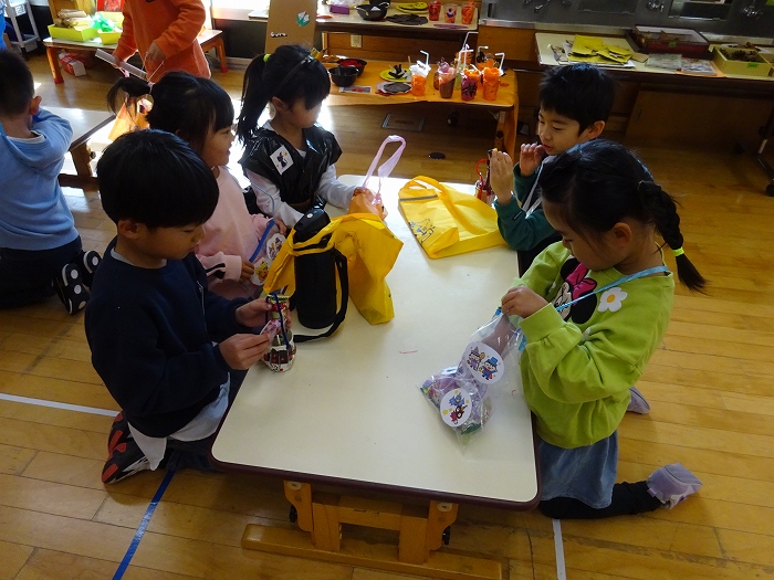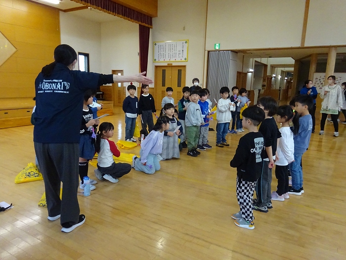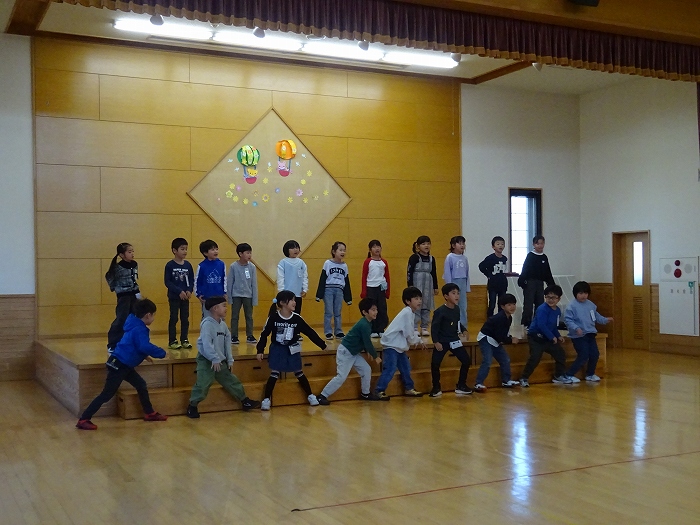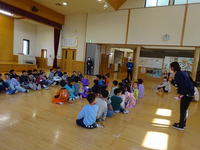 だしのこ園では、生保内小学校との交流を盛んにしておりますが、中でも”お里帰り”はとても喜ばれる交流になっています。3月にだしのこ園を巣立った現在の1年生の子どもたちが、みんなで園に帰ってきて、園での生活を懐かしみ遊んだり、小学校での生活の一こまを紹介してもらったりしながら、「1年生になったんだ!」という成長を感じてもらえる機会になっています。また、在園児にとっても、再会を喜び、「1年生」になったお兄さんお姉さんたちの雰囲気を感じられる機会です。