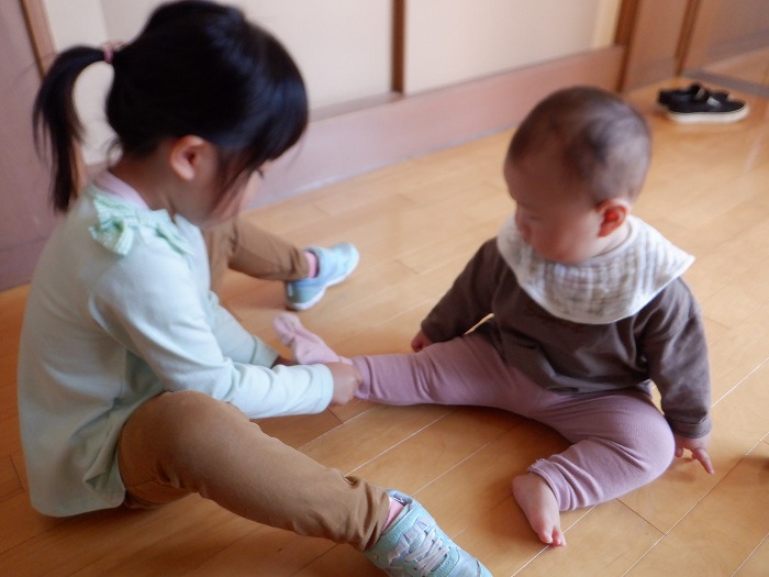 ~そら組のおねえちゃんに靴下をはかせてもらったよ~