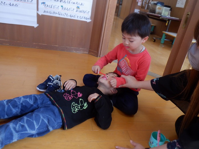 ~歯磨き指導。友達の歯を磨いてみたよ~