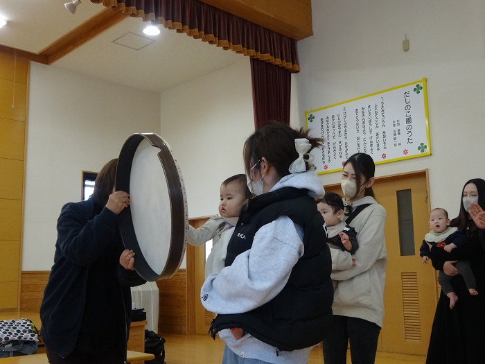普段なかなか触れることのない楽器「トーンチャイム」を使用させていただきました。ハンドベルに似た柔らかい音にH先生のキーボードの音がかさなってうっとり…。親子で1本持ってみんなで演奏してみました♪