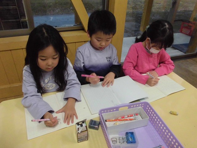 学校ごっこ♡鉛筆の持ち方や、椅子に座る時の姿勢を意識しながら勉強中‼