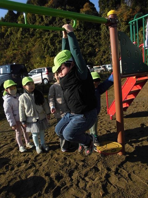 晴れ間を見て園庭へ♡風が冷たくてなって、遊んだ後は手が真っ赤になってたよ!