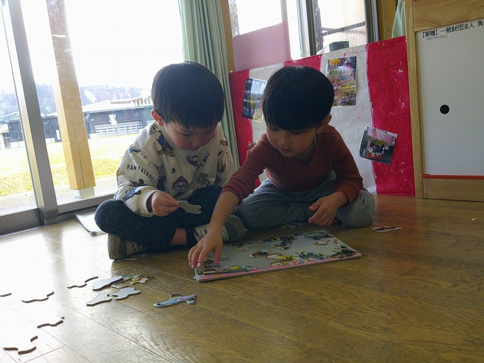 友達と一緒にパズルたのしいな~