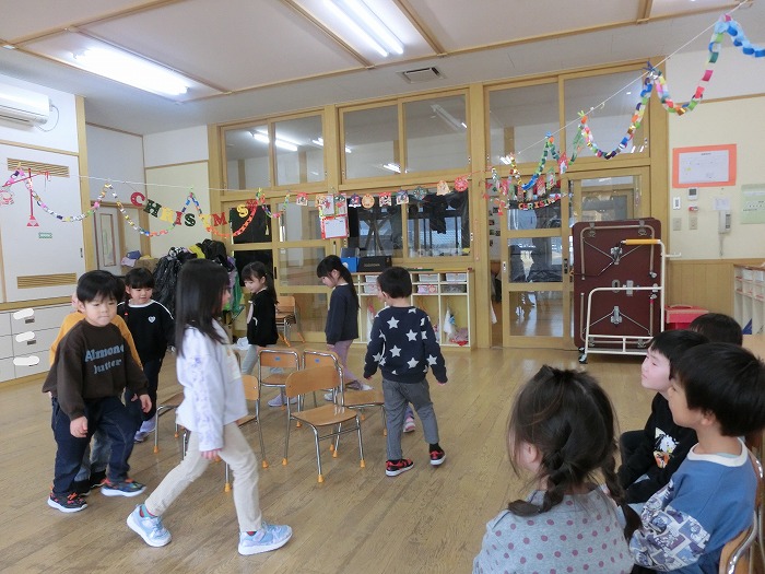 クリスマス会、サンタさんが来てくれて一緒にダンスしました!