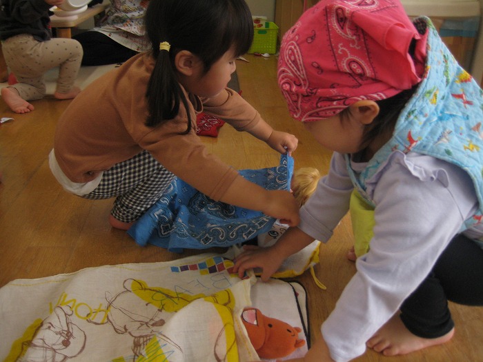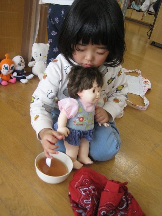 お兄さん、お姉さんの真似っこ!