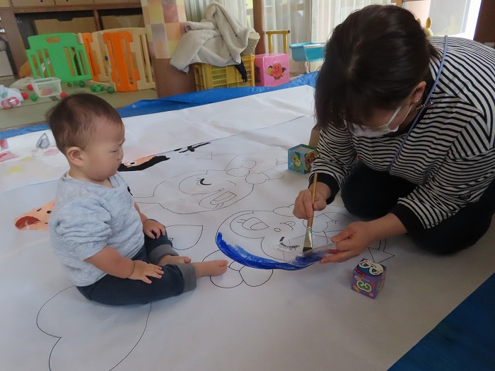 ~お母さんと一緒に紙風船の色塗りしたよ~