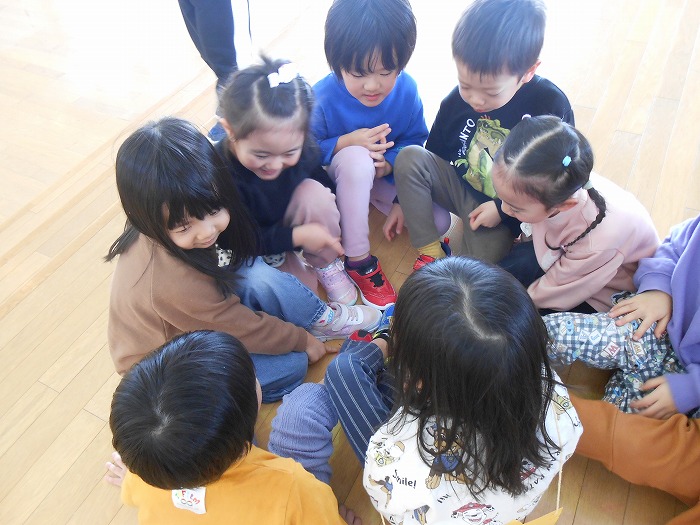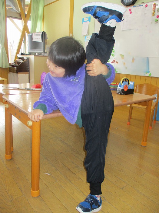 「みんな~みてー‼」体の柔らかさをみんなに見せてくれました!