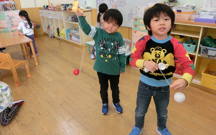 けん玉に挑戦!難しいけどできた時は嬉しいんだよね☆