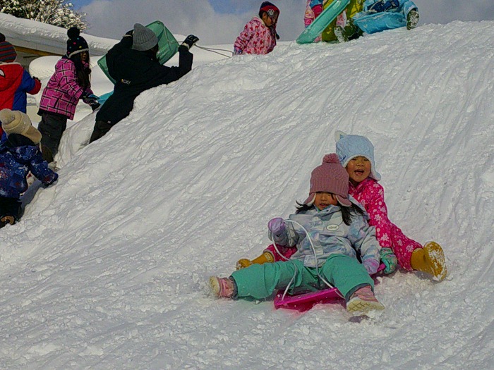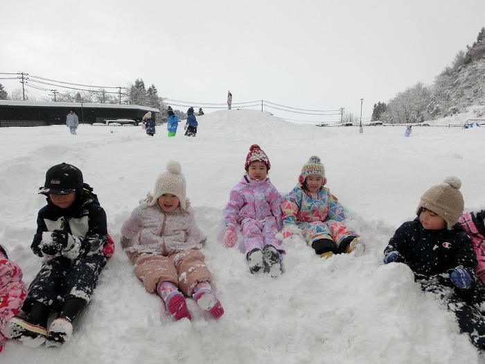 雪山で「せ~の‼」みんなで一緒に滑るの楽しいね~♪