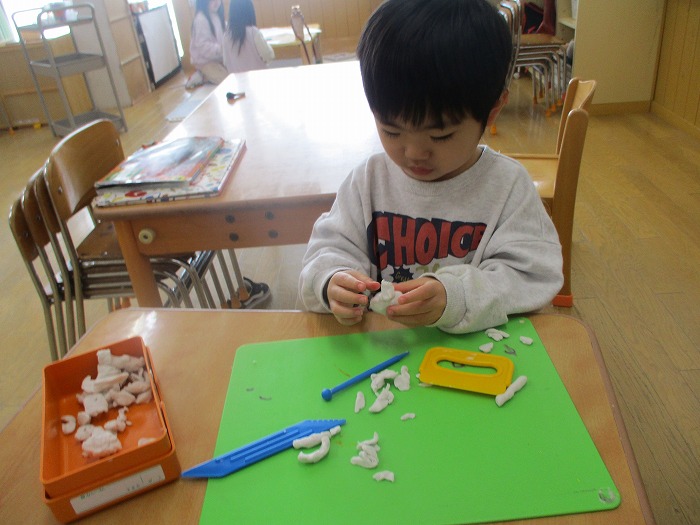 「ポテト作ってる!」と大好きなマックのポテトを沢山作っていました!