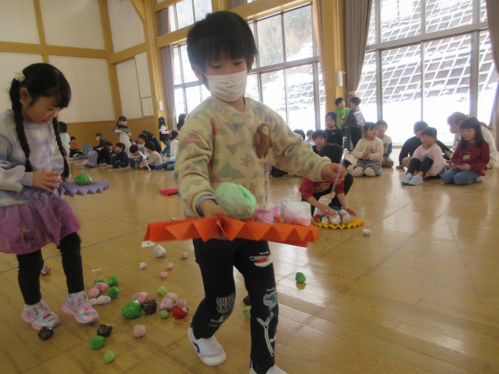 ひな祭り会のゲーム。上手に運ぶぞ~!